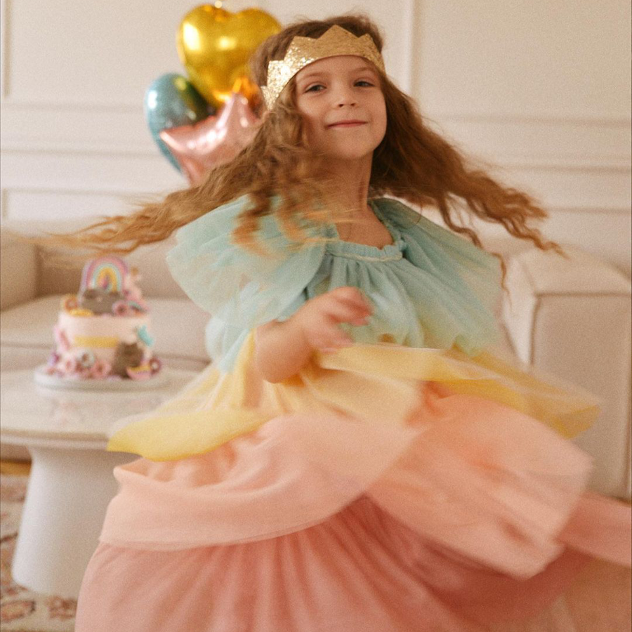 파스텔 레인보우 러플 코스튬 생일 파티 드레스