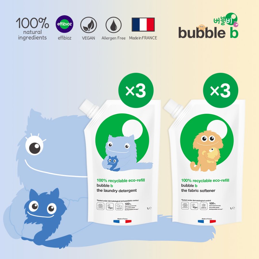 [3+3] 고농축 친환경 세탁세제 리필 3L + 유연제 리필 3L