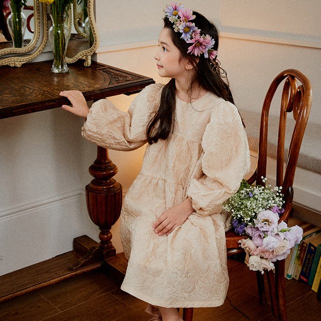 플로럴 코사지 원피스-베이지