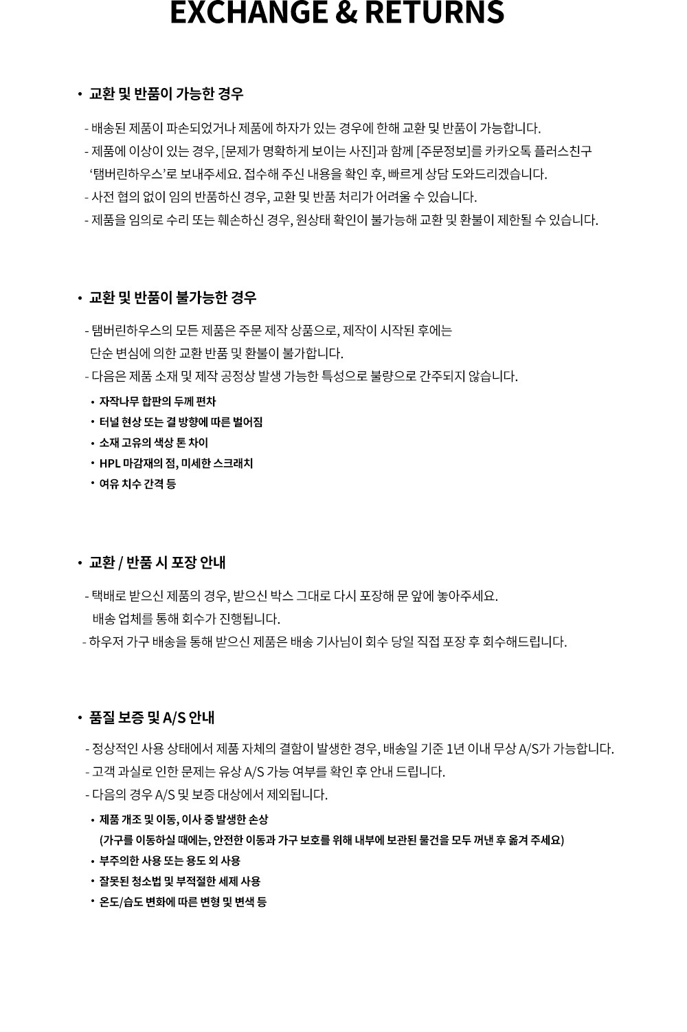 · 단순변심 교환 : 교환택배비는 고객님 부담으로 처리되며, 동일한 상품으로만 교환이 가능합니다.