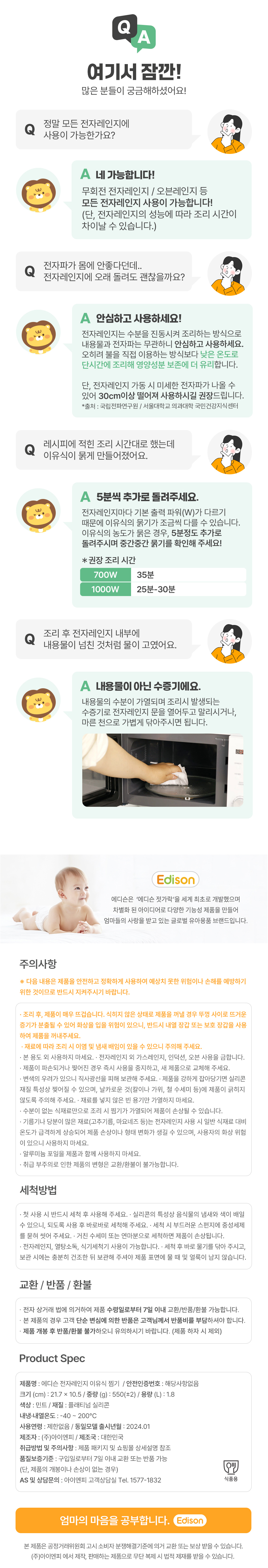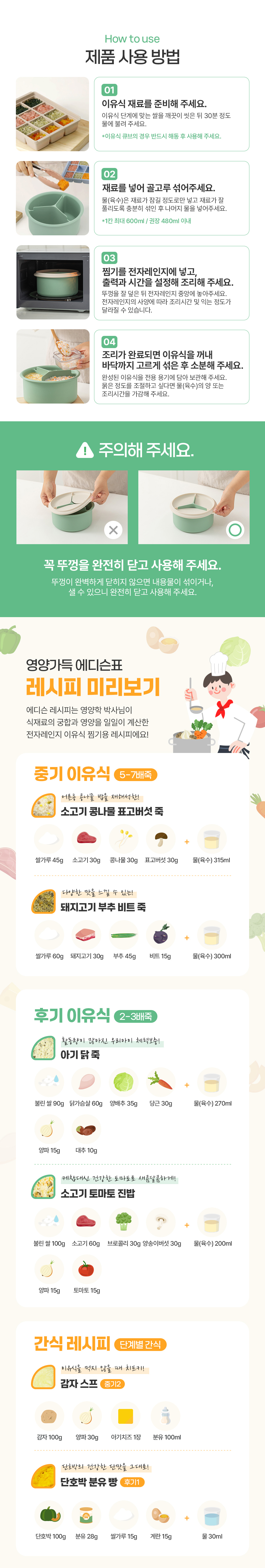 유아 아기 전자레인지 칸막이 실리콘 이유식 찜기 조리도구