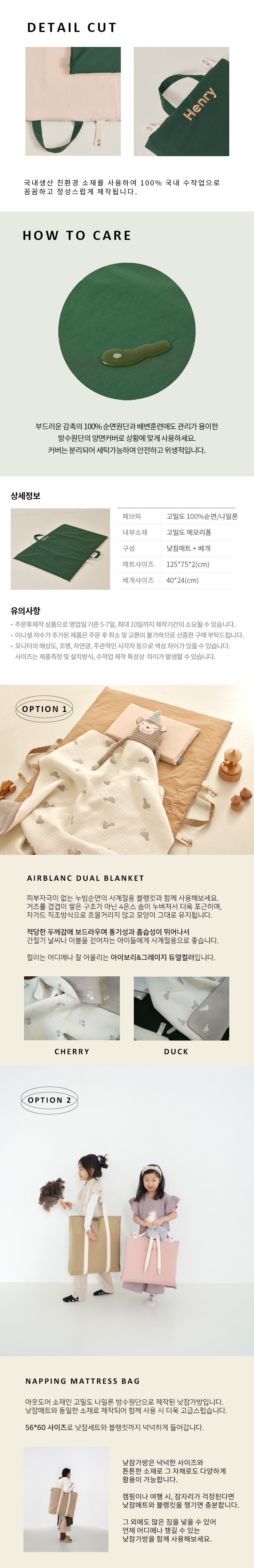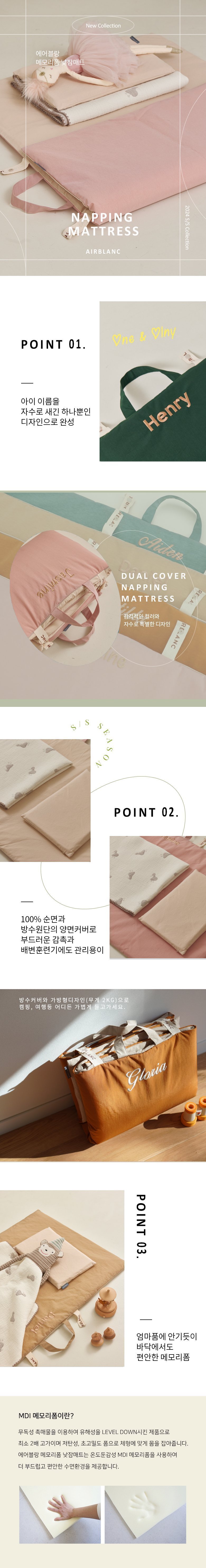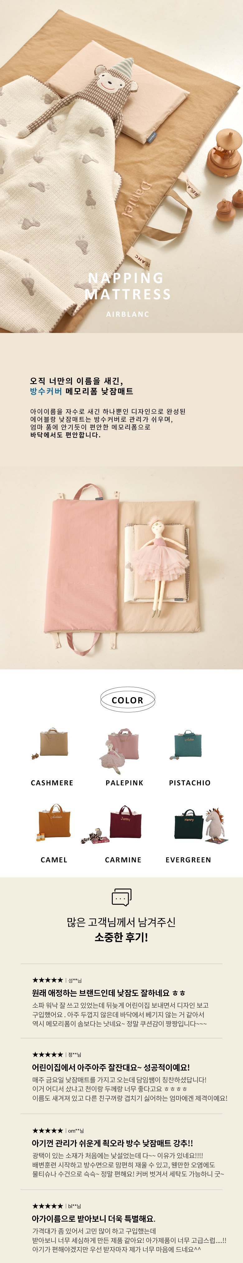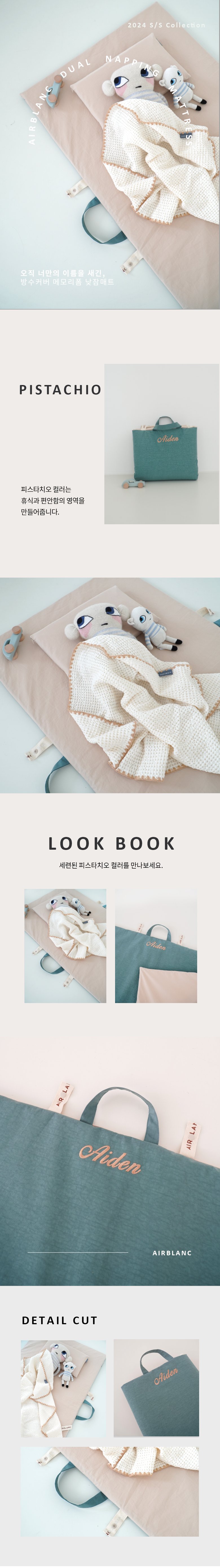 에어블랑 메모리폼 낮잠매트 이름자수 각인 / 피스타치오 / 워터프루프