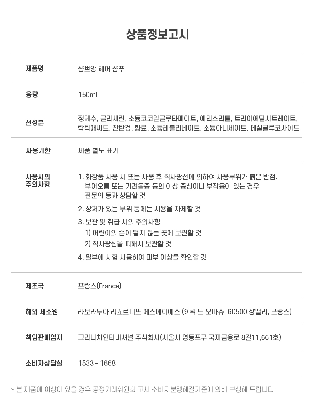 · 샴쁘앙 헤어 샴푸 150ml+리필1개