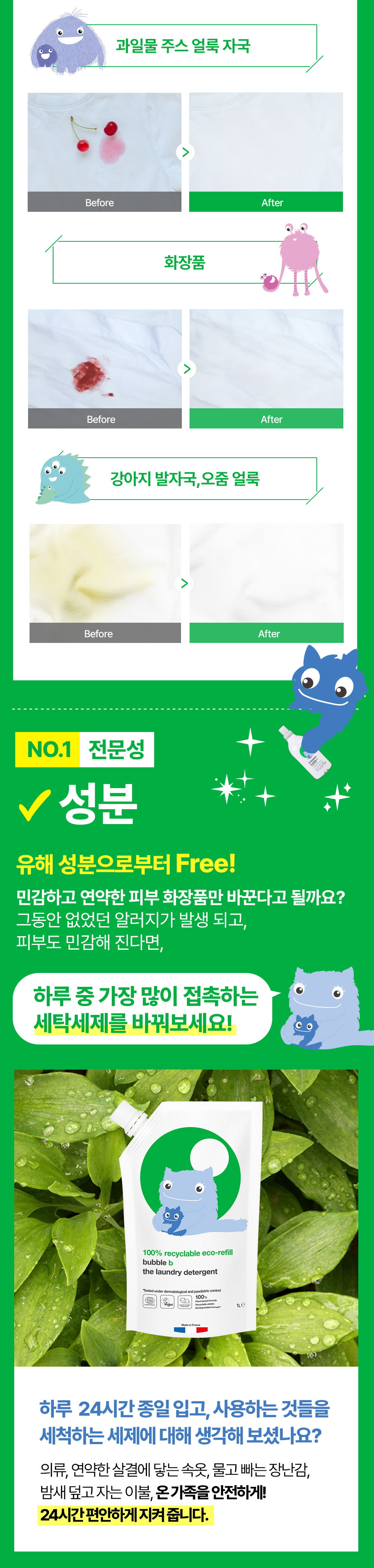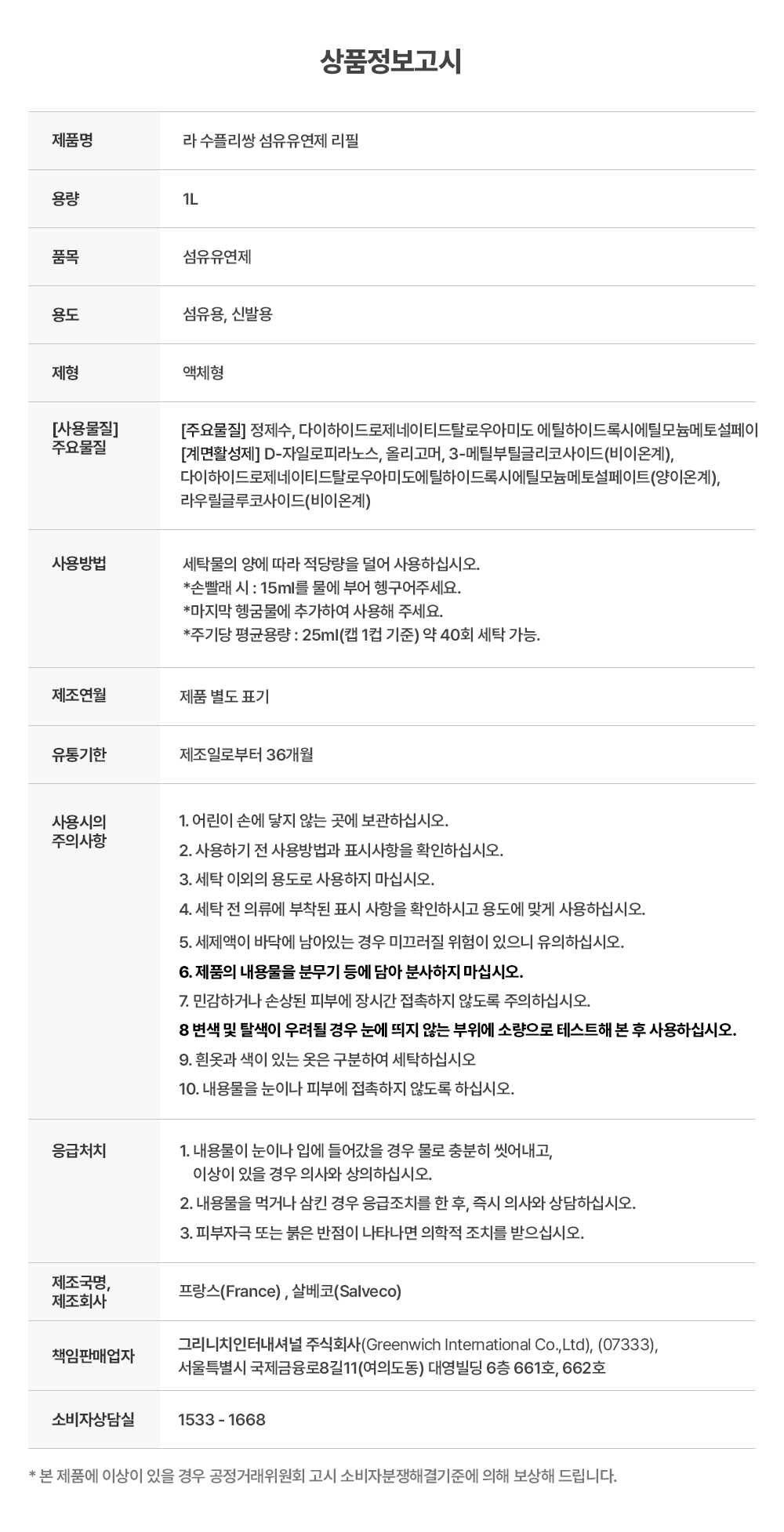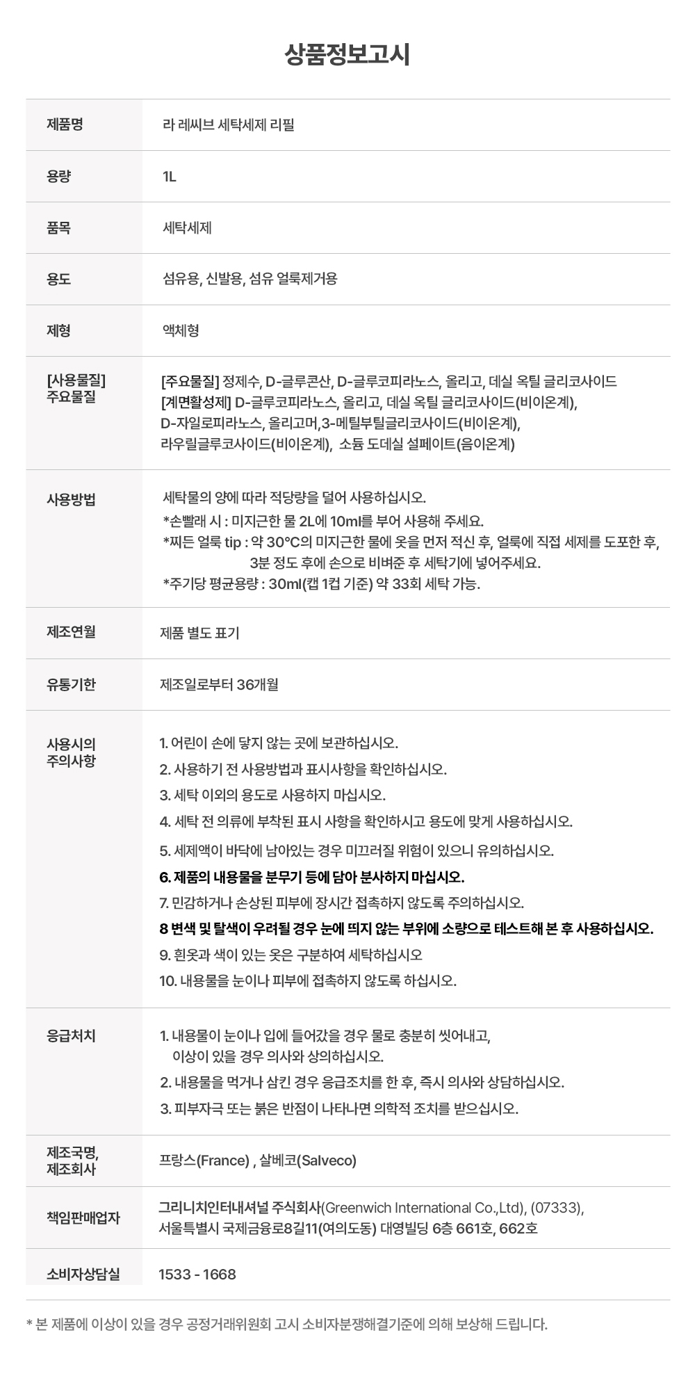 [3+3] 고농축 친환경 세탁세제 리필 3L + 유연제 리필 3L
