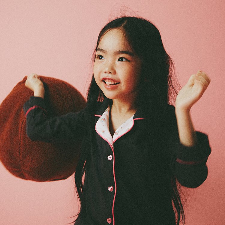 “Stay Warm, I Love You"라는 따뜻하고 사랑스러운 메시지가 소매 부분에 자수로 새겨진 파자마입니다.  파자마는 미국 남서부의 특정 지역에서 재배되는 최고급 면화, 100% 수피마(Supima) 면으로 제작되었습니다. 수피마 면은 일반 면보다 섬유가 길고 부드러워 피부에 닿는 촉감이 한층 더 고급스럽고 편안합니다. 가벼우면서도 내구성이 뛰어나 착용감이 뛰어나며, 오랜 기간에도 품질을 유지합니다. 카라부분에는 작은 장미 패턴이 배색되었으며, 하트 모양의 단추와 마이스텔라의 시그니처 모티브가 더해져 아이에게 편안함과 사랑스러움을 동시에 전해줄 수 있는 완벽한 아이템입니다.