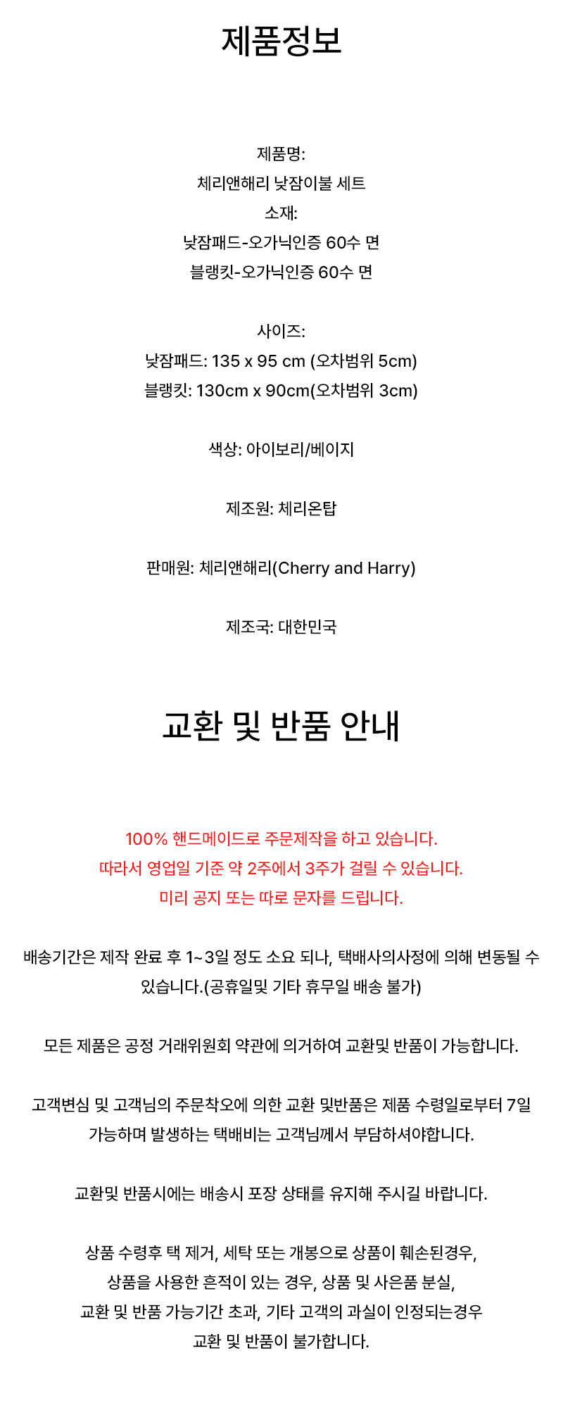 · 단순변심 교환 : 교환택배비는 고객님 부담으로 처리되며, 동일한 상품으로만 교환이 가능합니다.