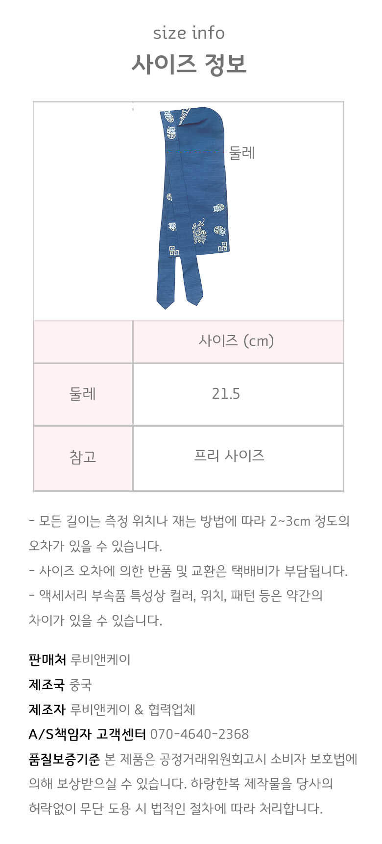 하랑한복 액세서리 복건 건이랑-곤색