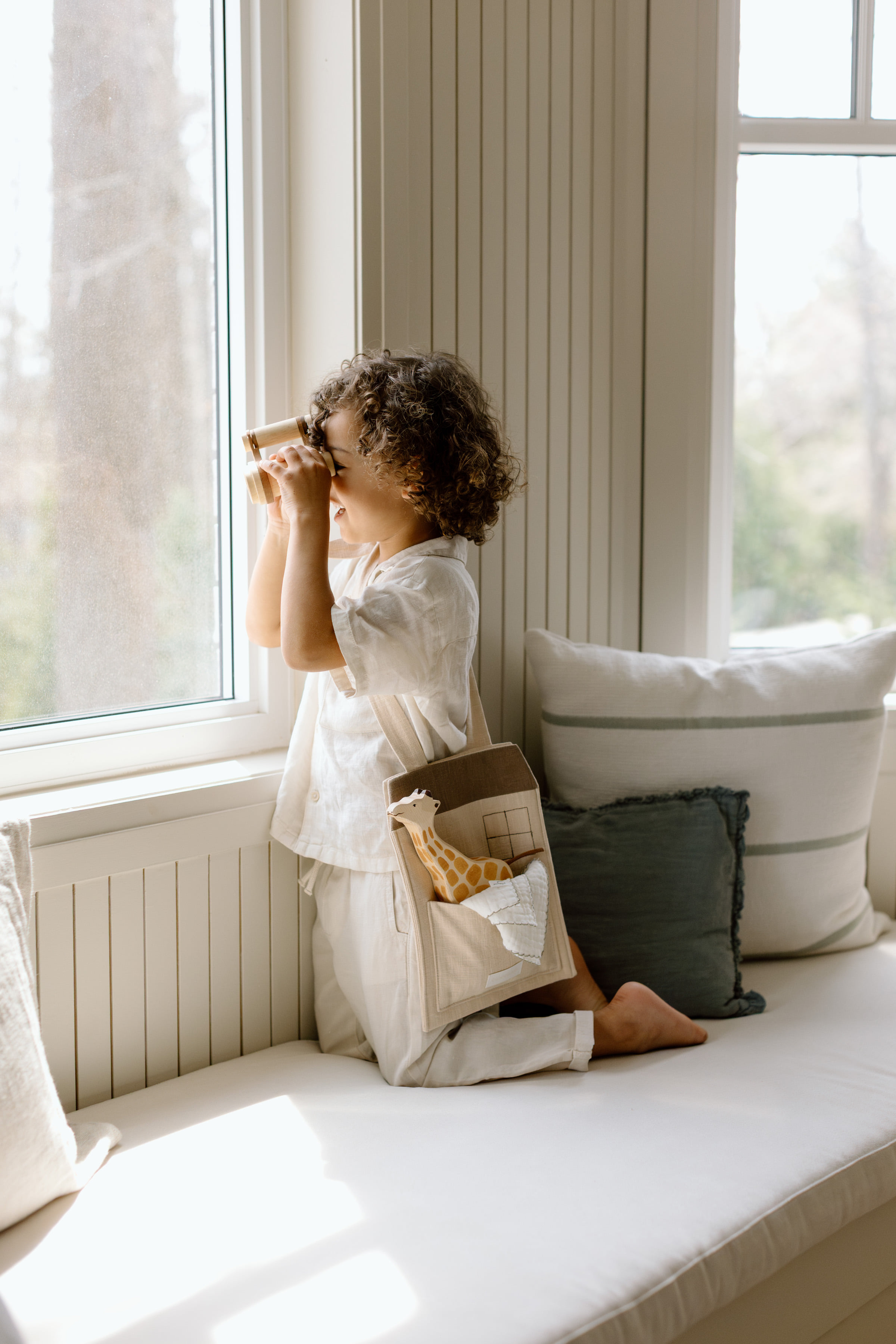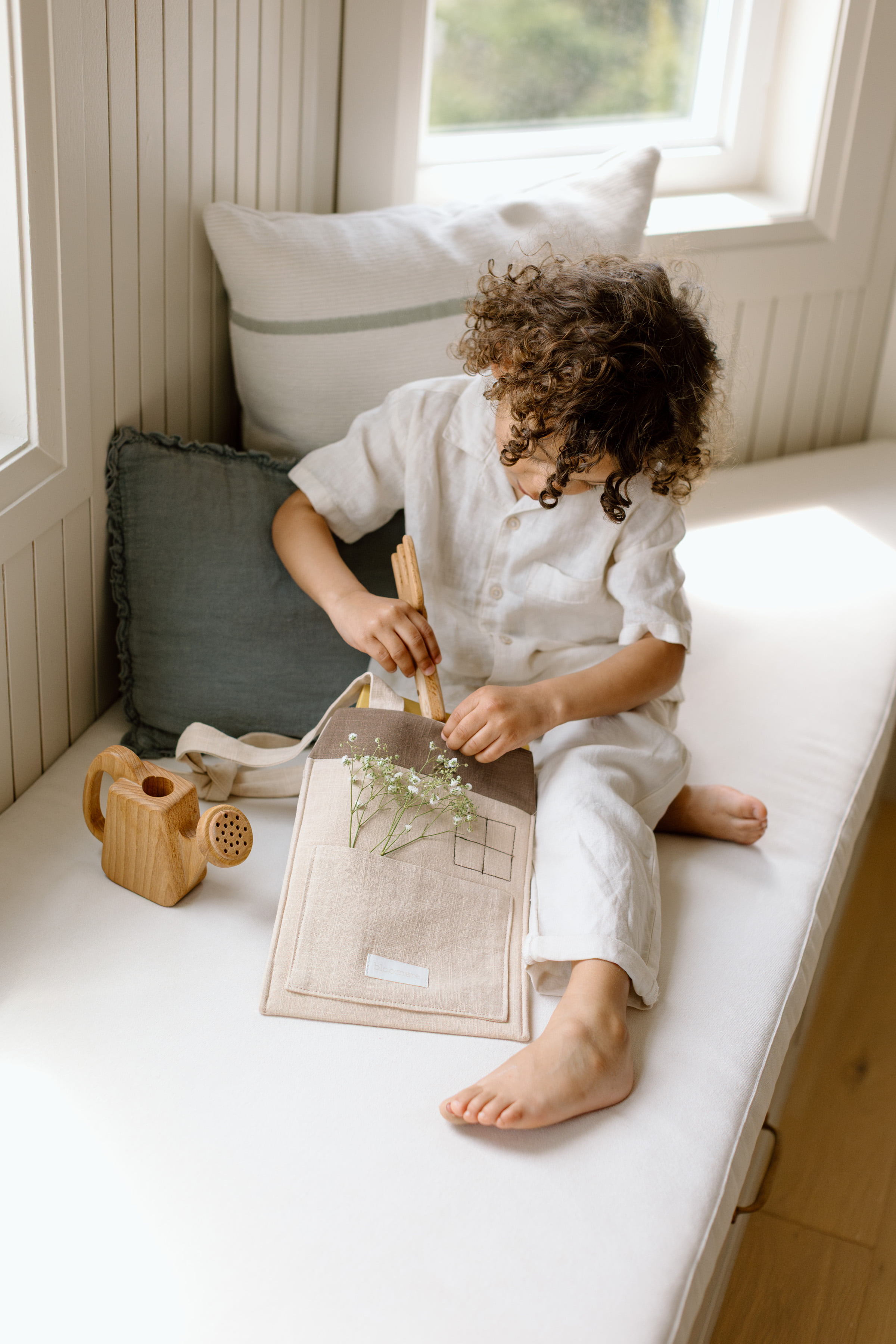 아이 스스로 인형을 담고 리본을 묶으며,