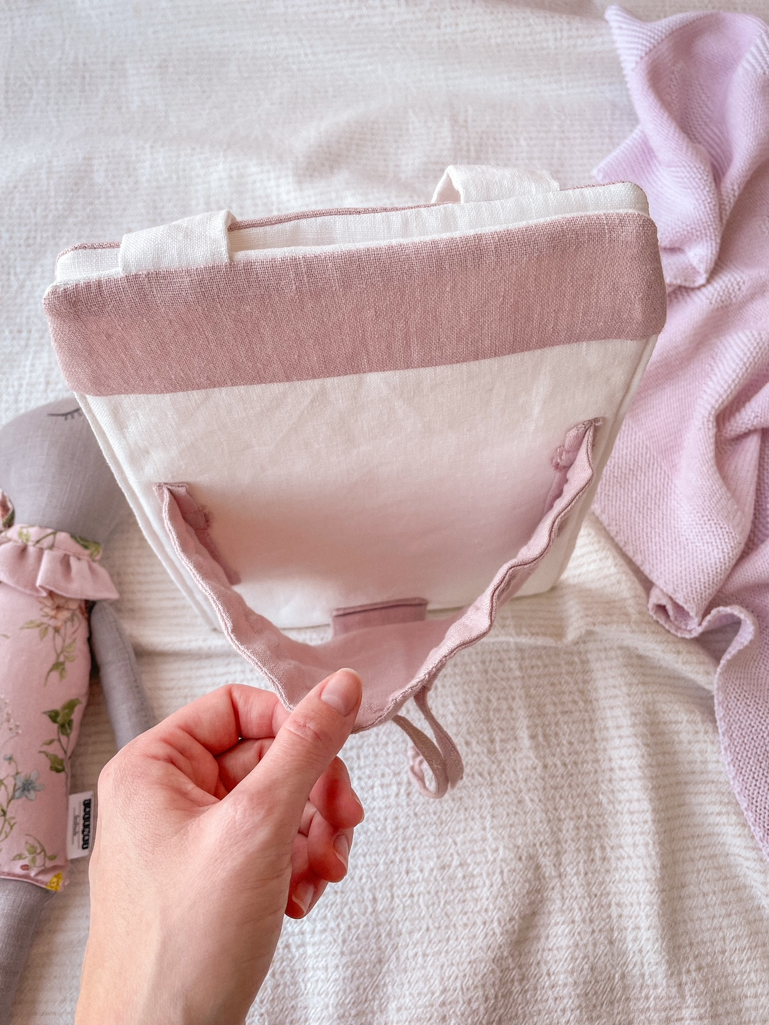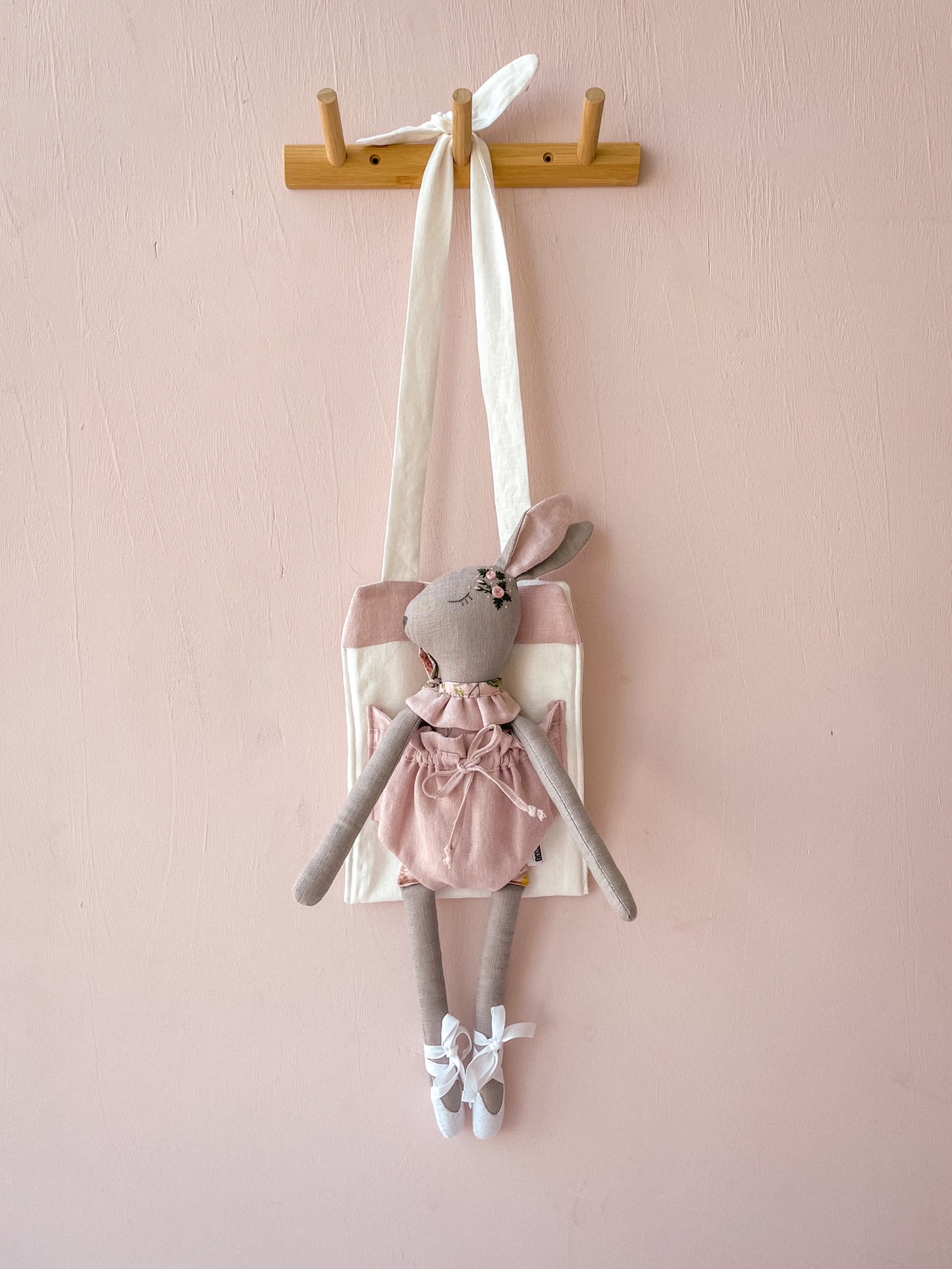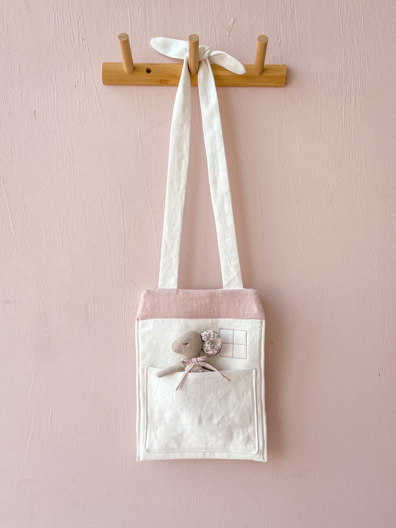 가방 입구는 리본으로 여닫을 수 있어 다양한 크기의 인형을 담기 좋고,