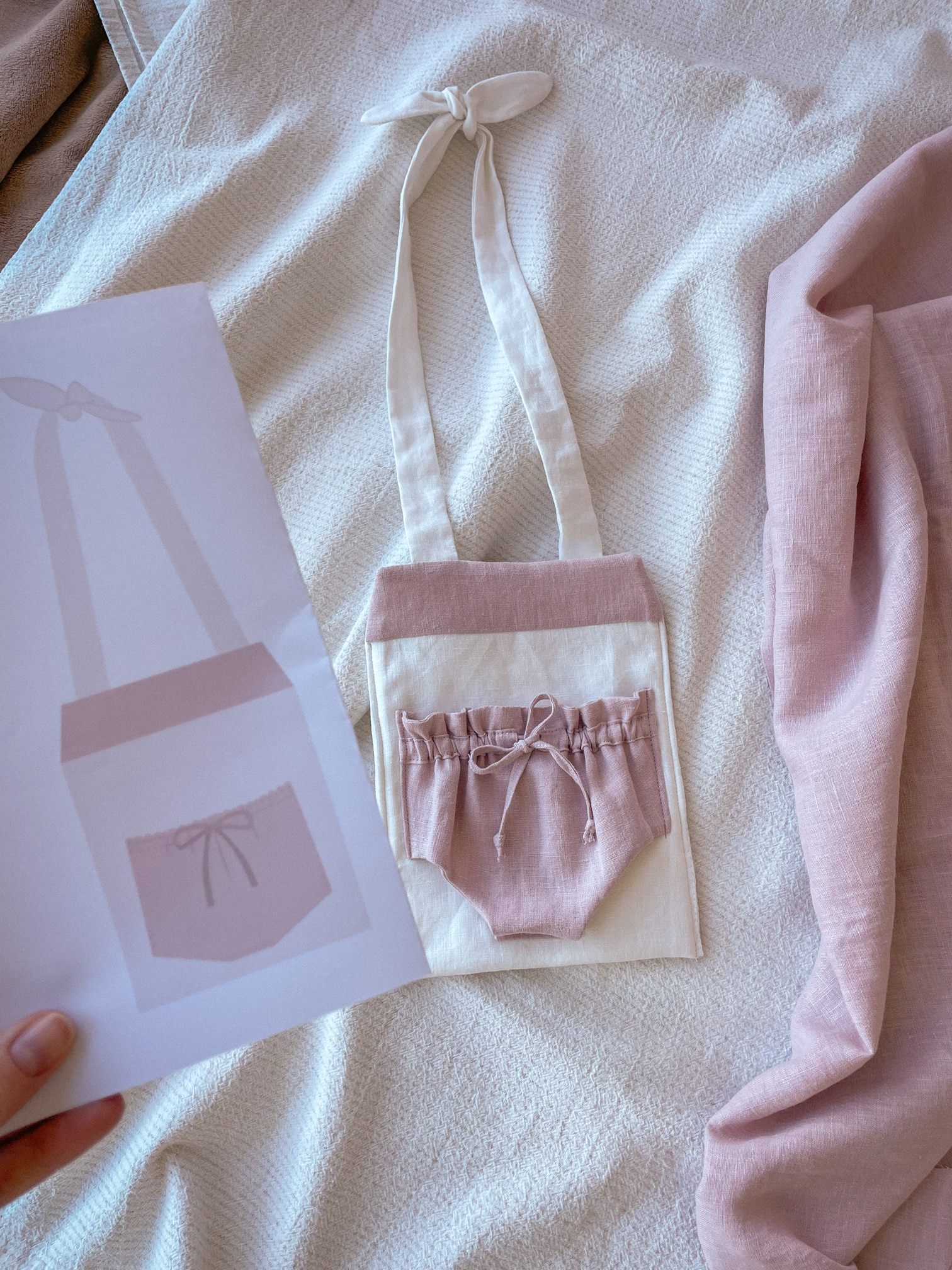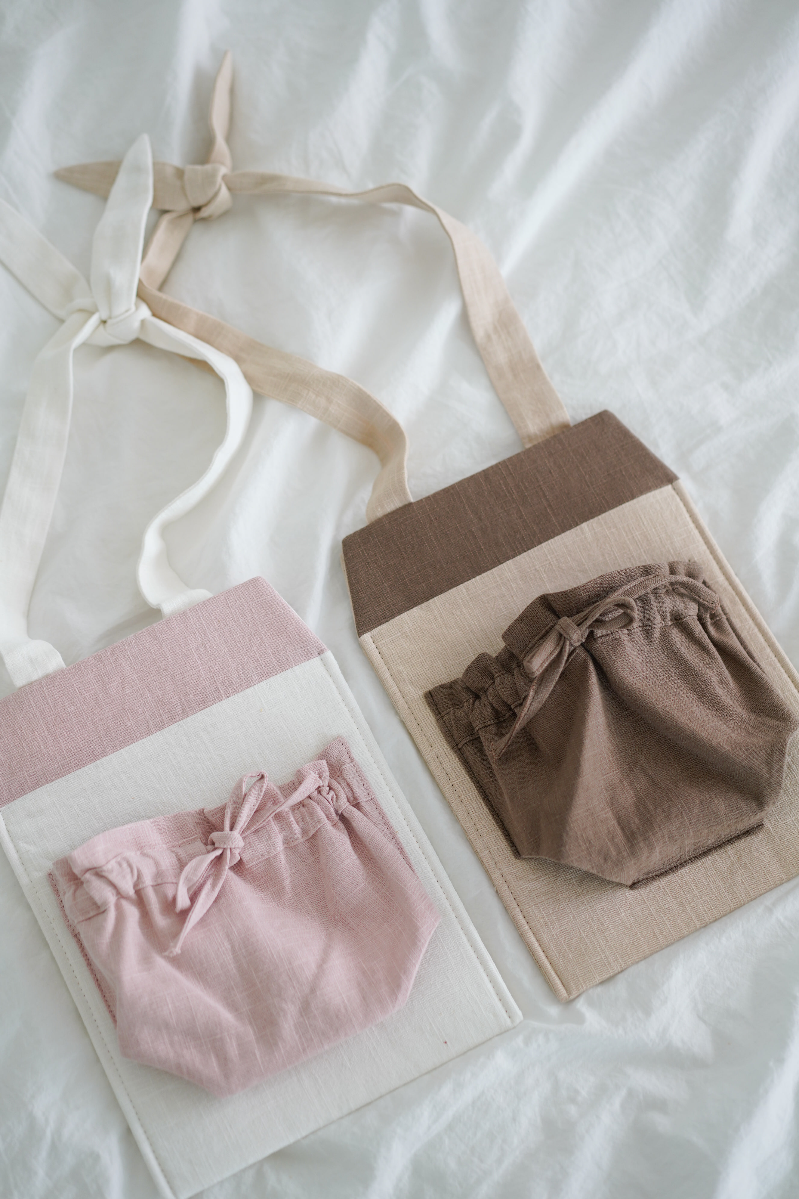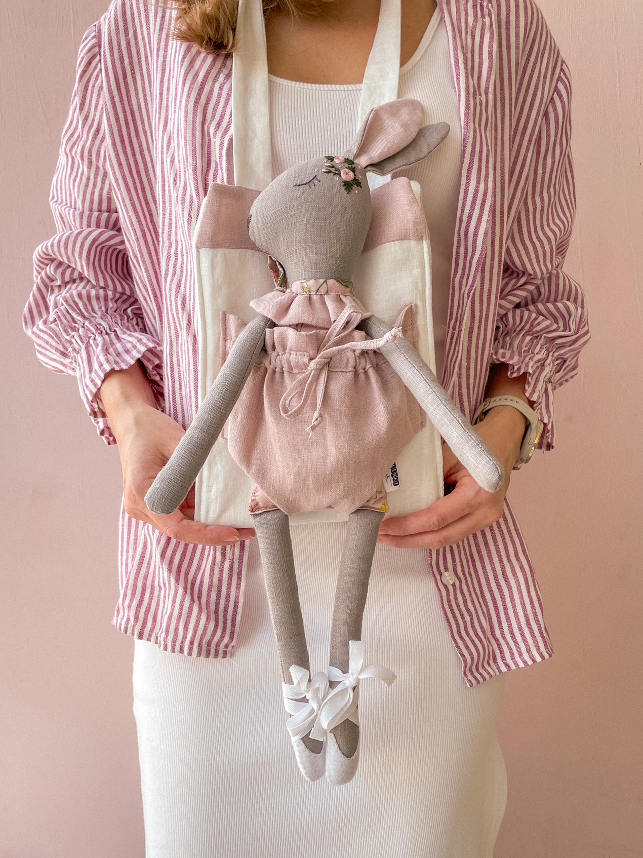 가방 입구는 리본으로 여닫을 수 있어 다양한 크기의 인형을 담기 좋고,