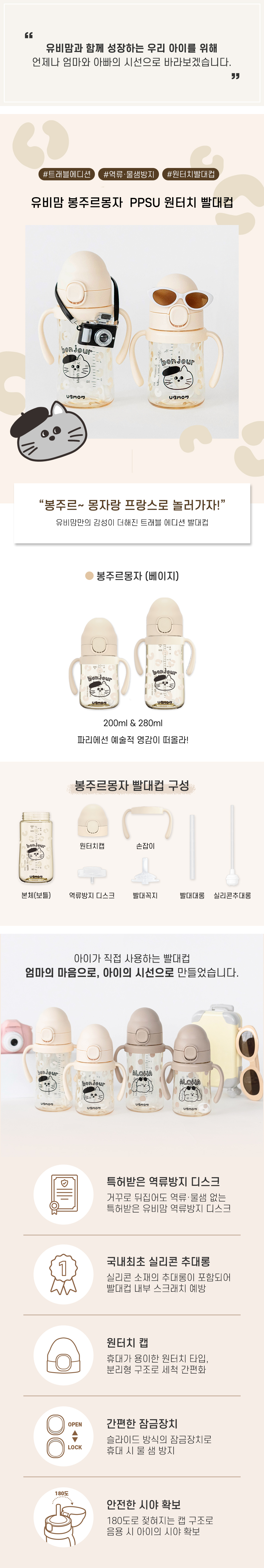 [1+1] 봉주르 몽자 원터치 PPSU 빨대컵 200ml/280ml (1COLOR)