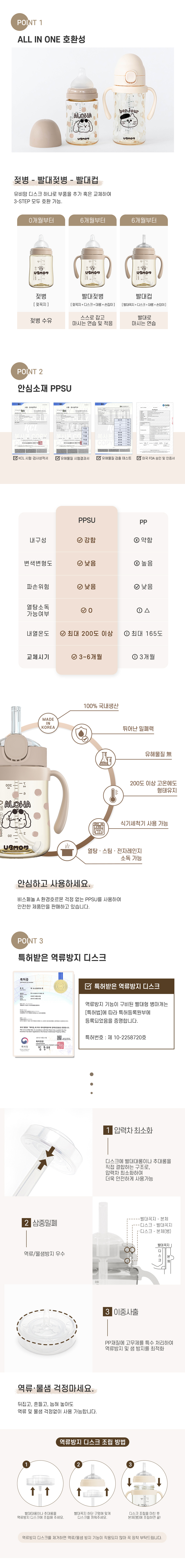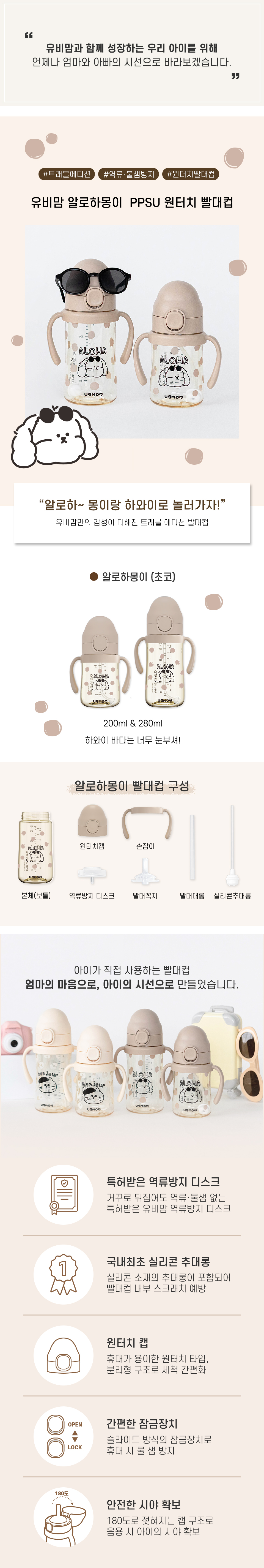 [1+1] 알로하 몽이 원터치 PPSU 빨대컵 220ml/280ml (1COLOR)