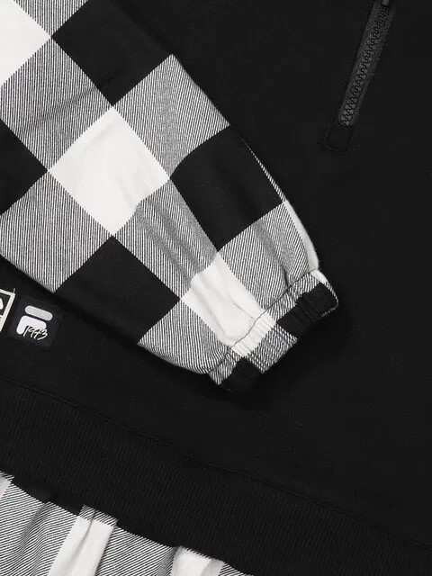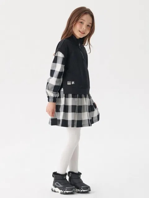 핑크/민트 컬러를 선호하지 않는 고객을 위해 블랙 플란넬 체크를 사용하였고 상의 부분은 기모를 사용하여 겨울에 기모레깅스 하나만 입고 착용할 수 있도록 했습니다.