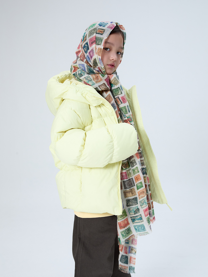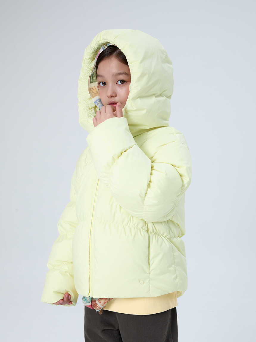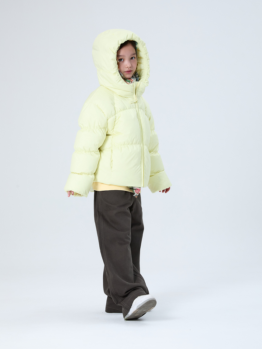 가볍고 따뜻하면서도 은은한 광택감과 볼륨감이 매력적인 KIDS 전용 후드 다운입니다.