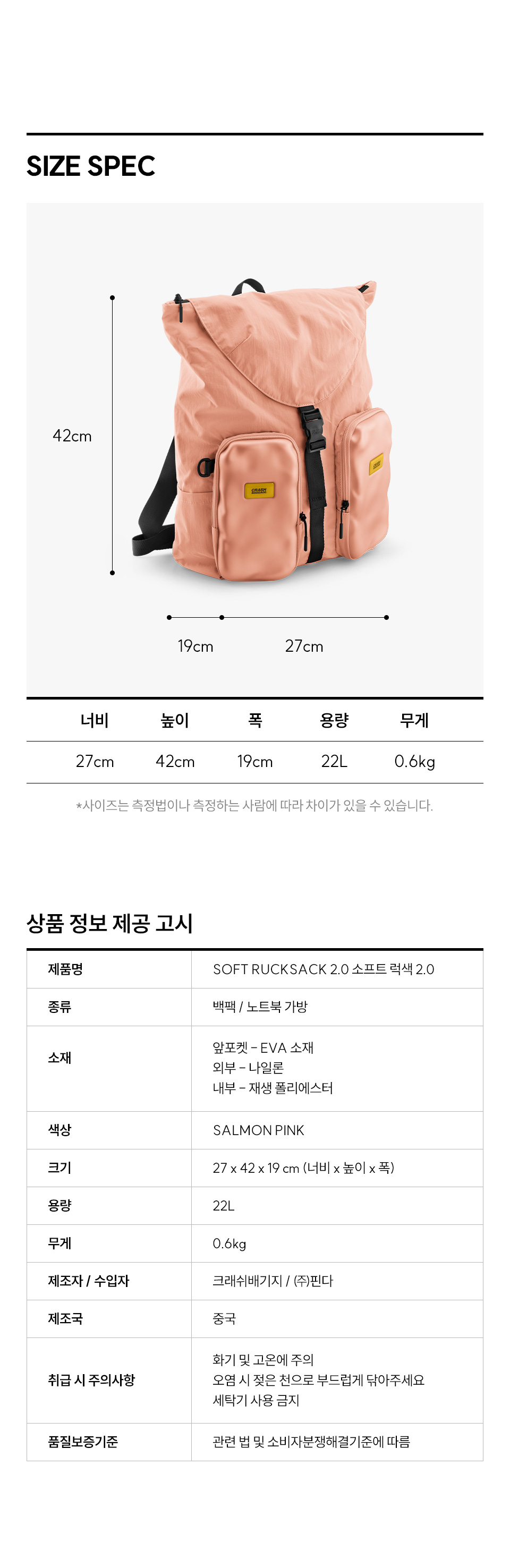 크래쉬배기지 소프트 럭색 2.0 백팩 샐몬 핑크 CBG-2SBG323-66