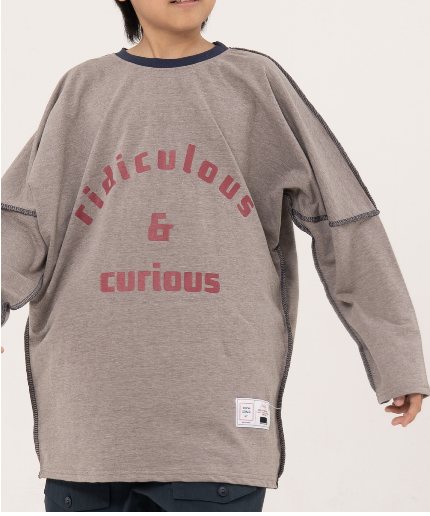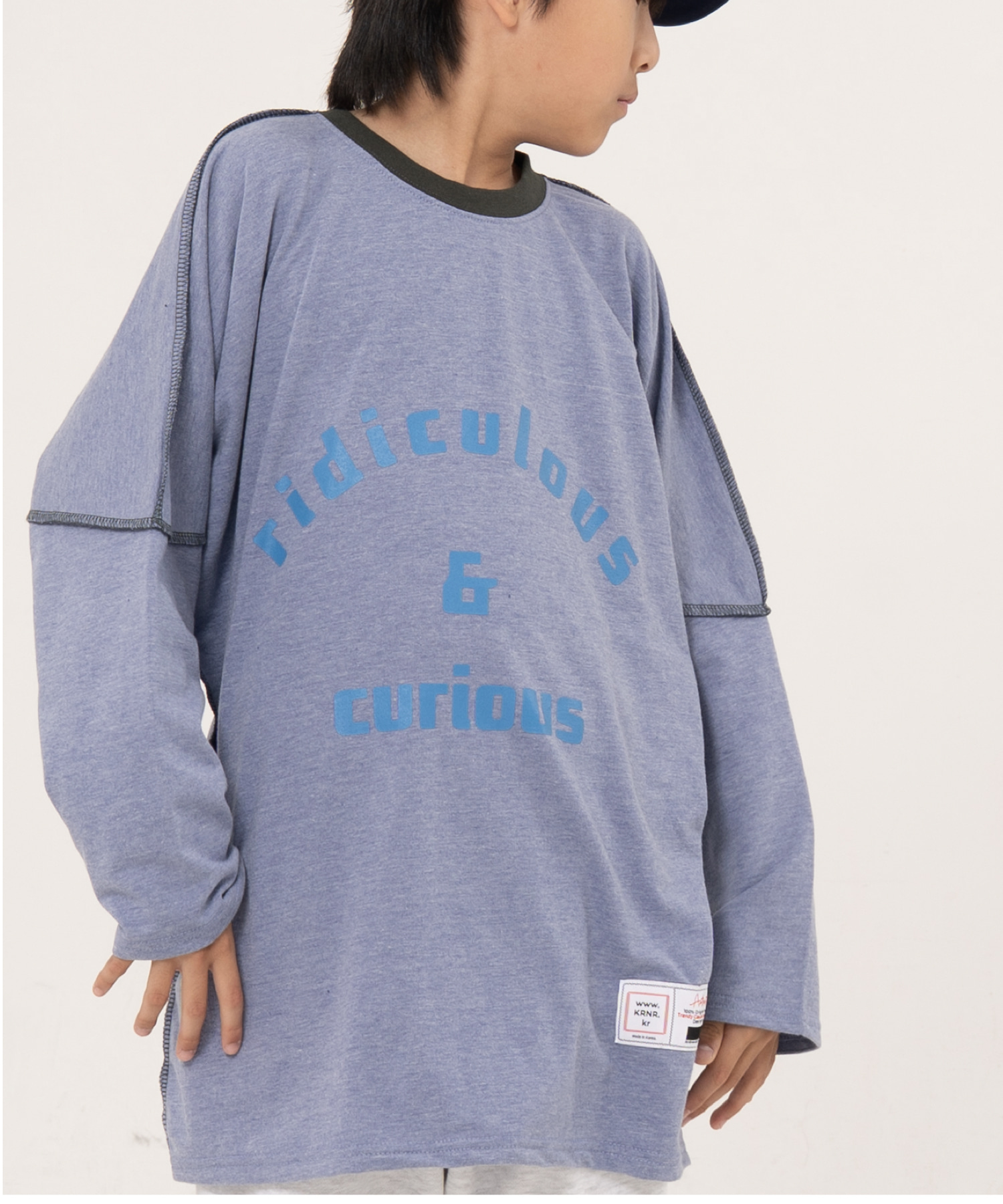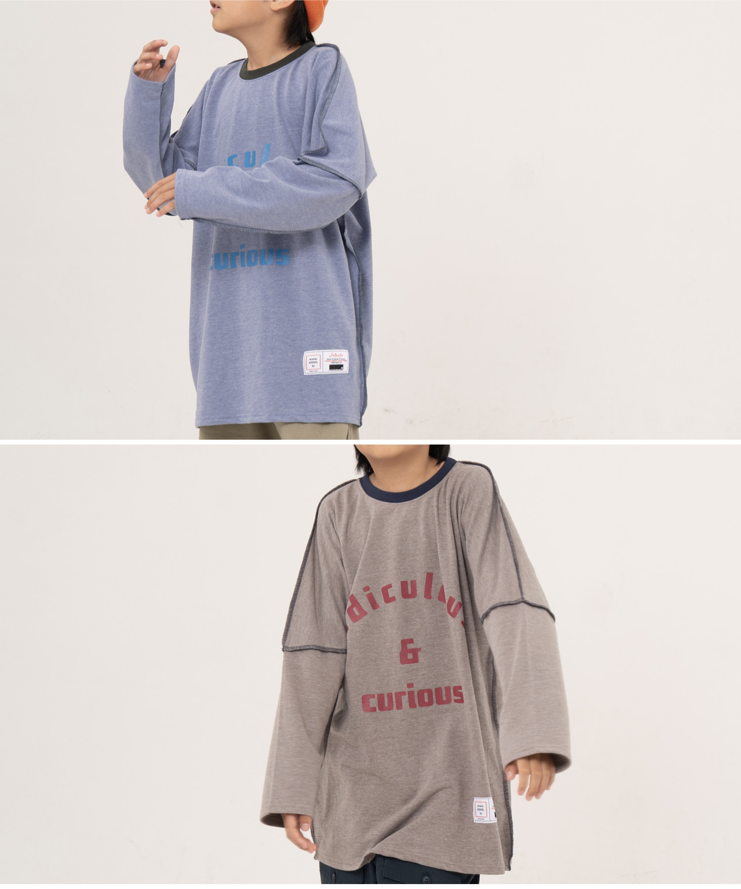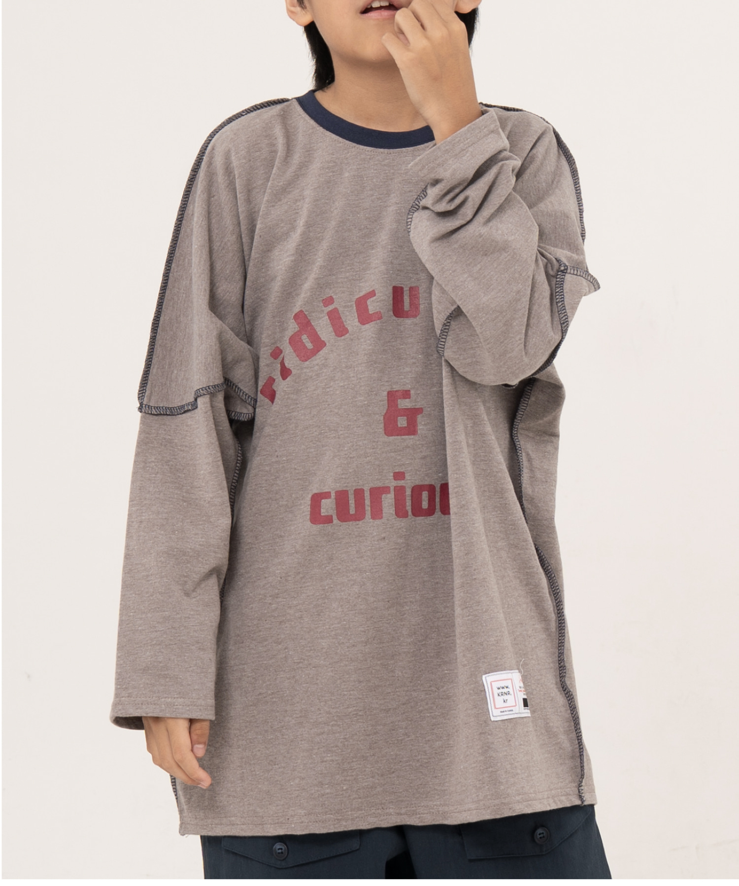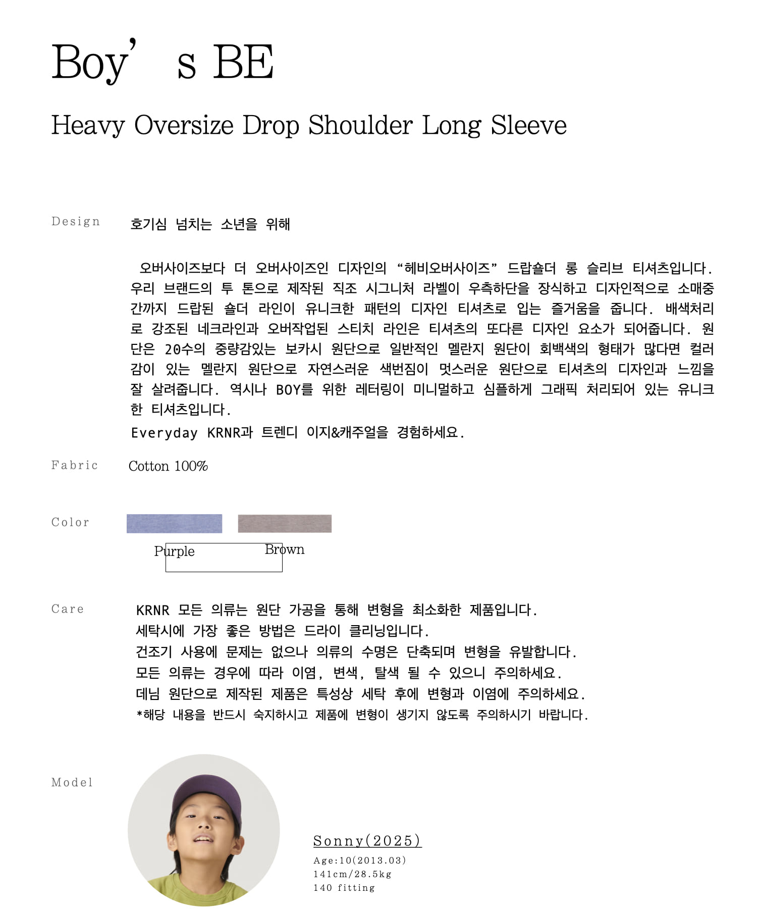[KRNR] BOYs BE 헤비오버사이즈 드랍숄더 주니어 긴팔티 브라운,퍼플