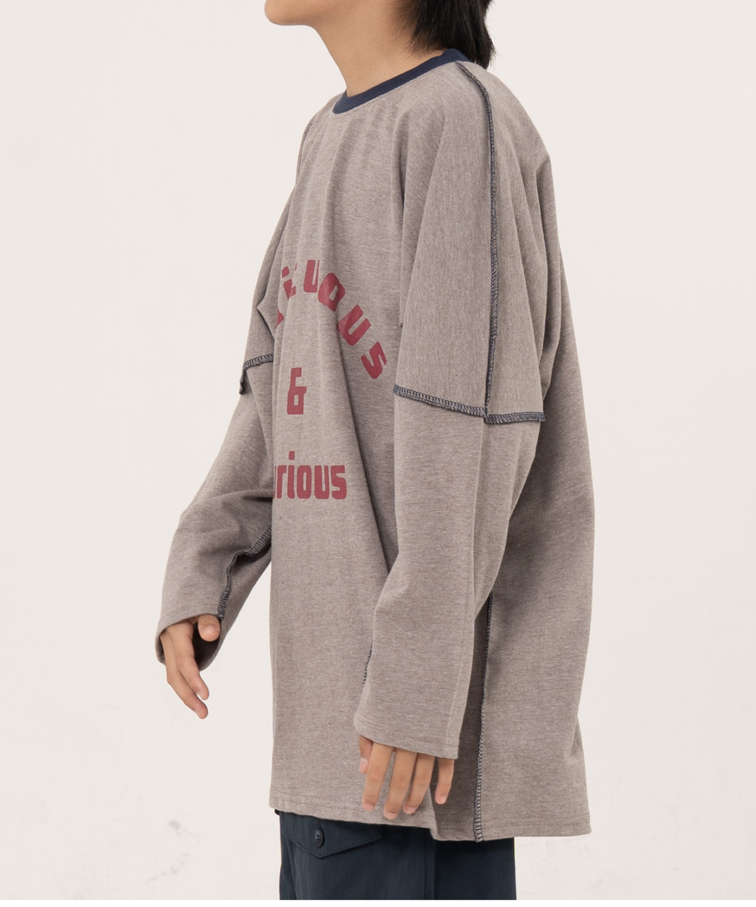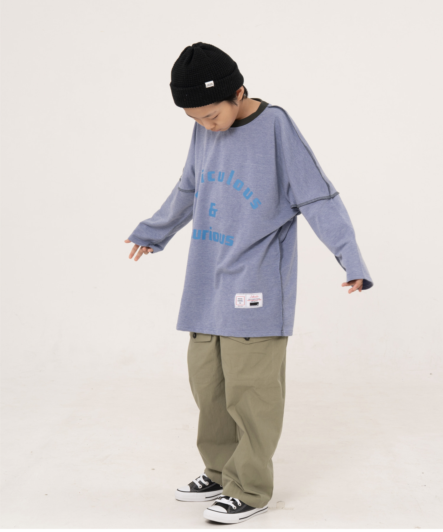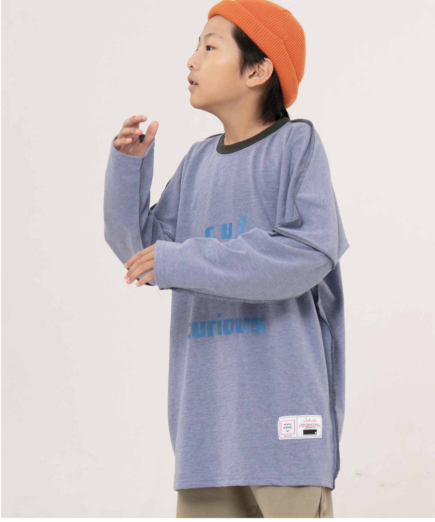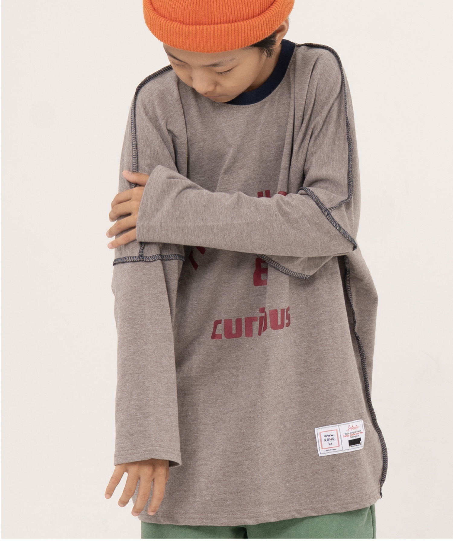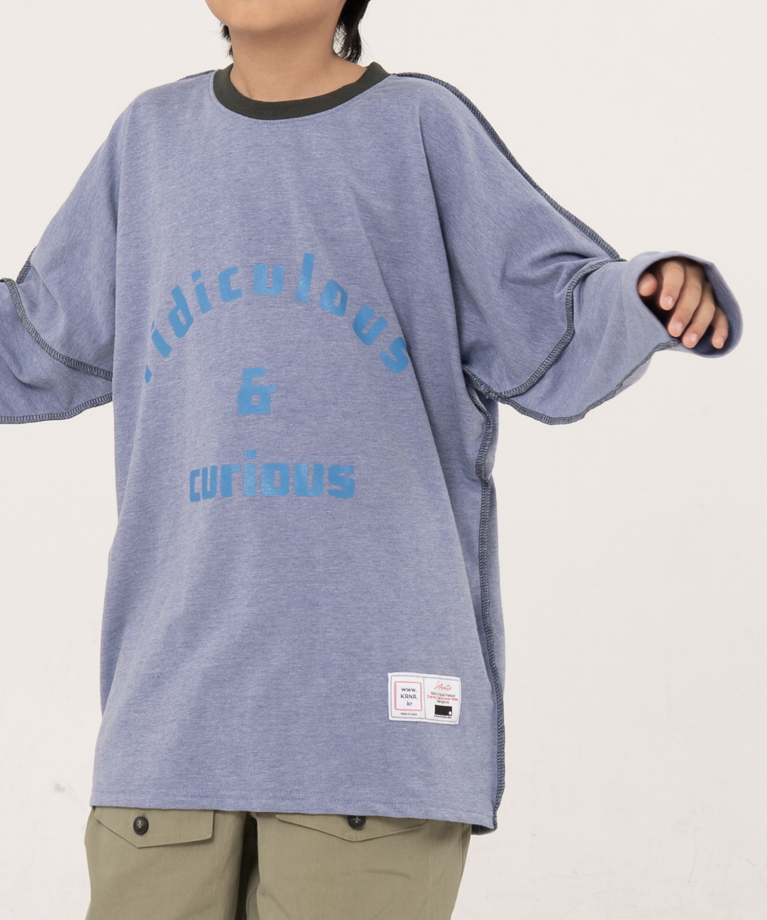 [KRNR] BOYs BE 헤비오버사이즈 드랍숄더 주니어 긴팔티 브라운,퍼플