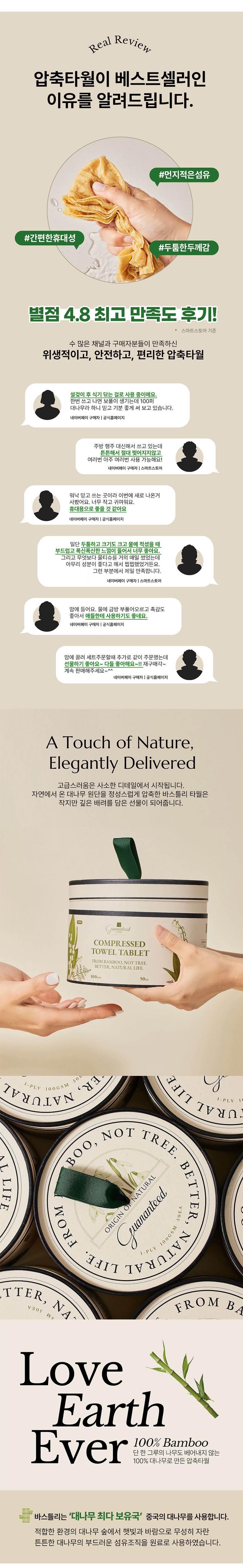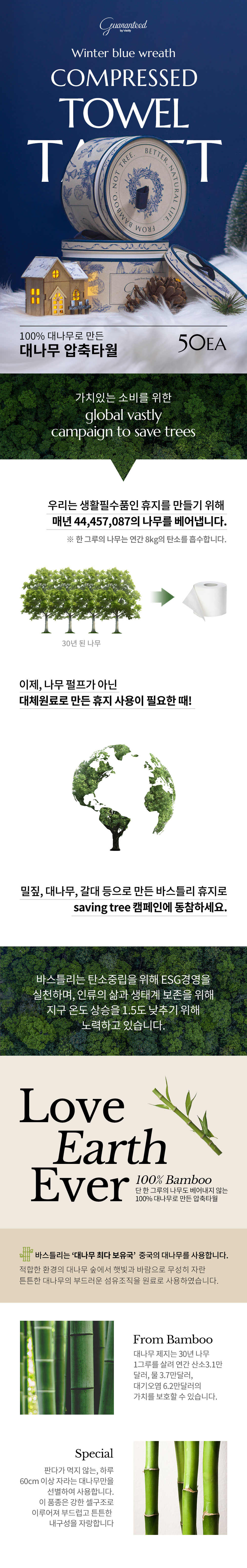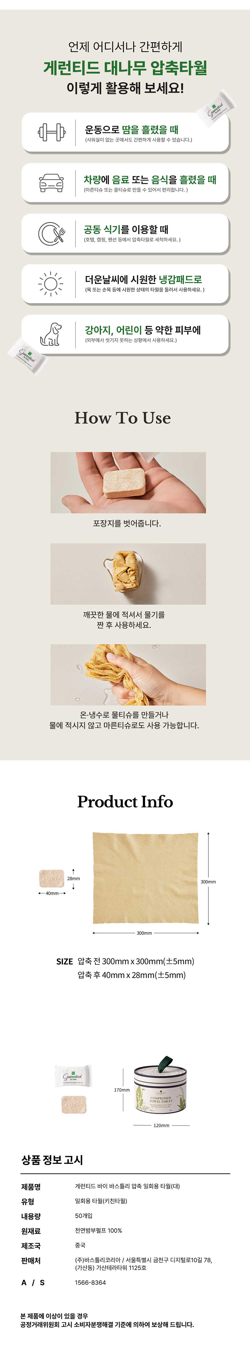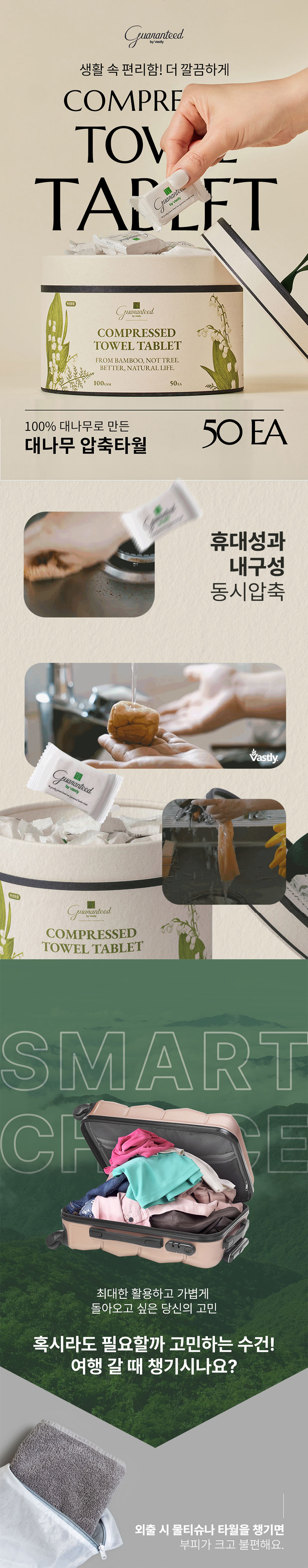 게런티드 by 바스틀리 더 도톰해진 친환경 빨아쓰는 행주 압축타올 타월 물티슈 50개입 원통형 대나무 100% 수건 휴대용 캠핑 여행 골프