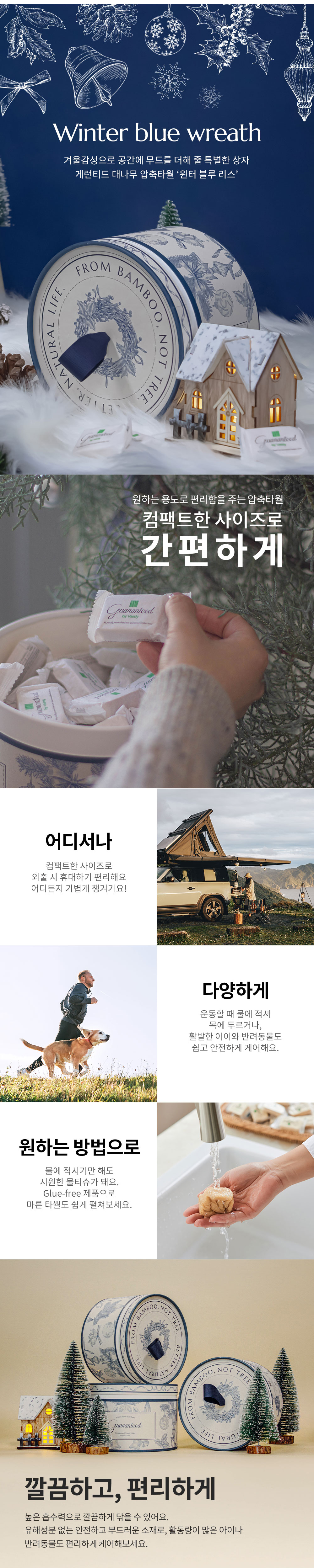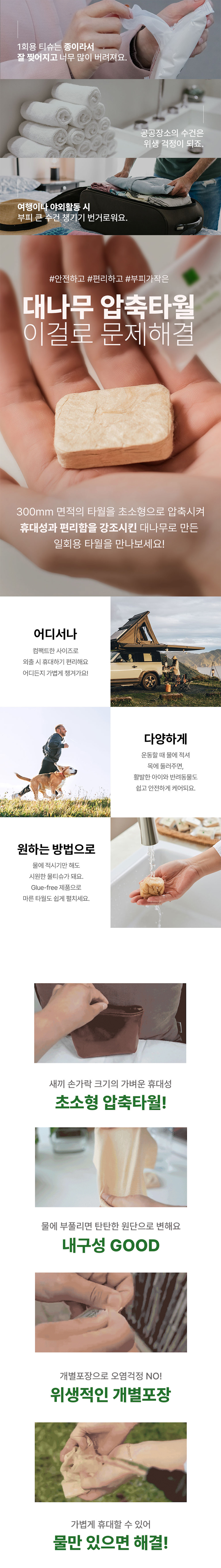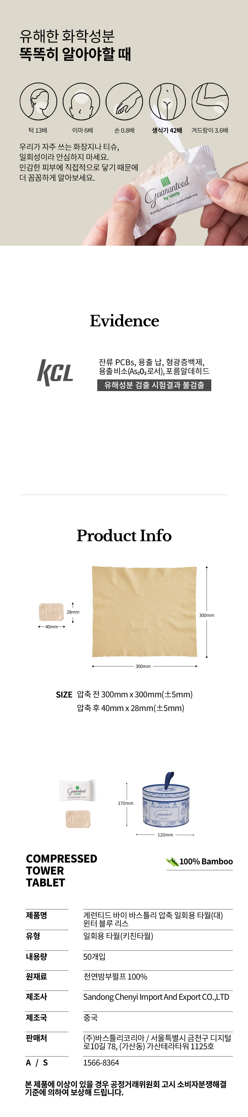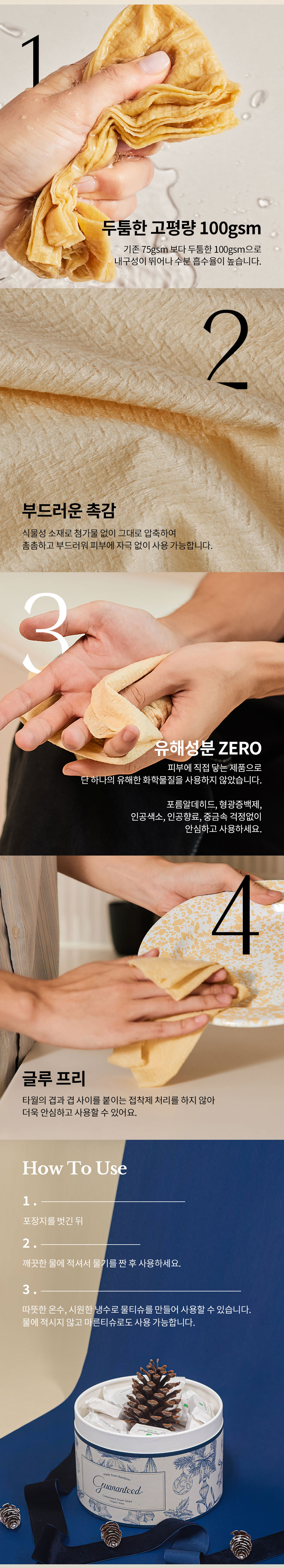 게런티드 by 바스틀리 더 도톰해진 친환경 빨아쓰는 행주 압축타올 타월 물티슈 50개입 원통형 대나무 100% 수건 휴대용 캠핑 여행 골프
